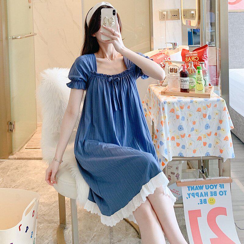 2021年新款网红款睡衣女夏季薄款纯棉短袖甜美中长款可外穿睡裙热门设计联盟服务商