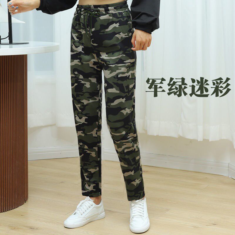 春季新款迷彩裤女宽松大码工装裤高腰力户外休闲运动哈伦小脚裤热门设计联盟服务商
