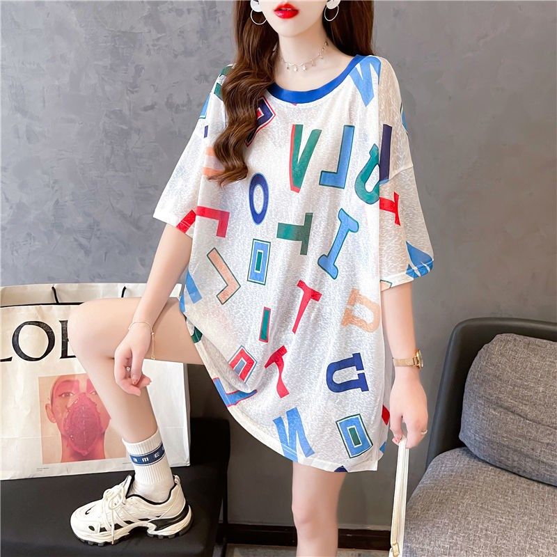 ins风款短袖t恤女夏季薄款宽松大码女装中长款冰丝设计感体桖潮热门设计联盟服务商