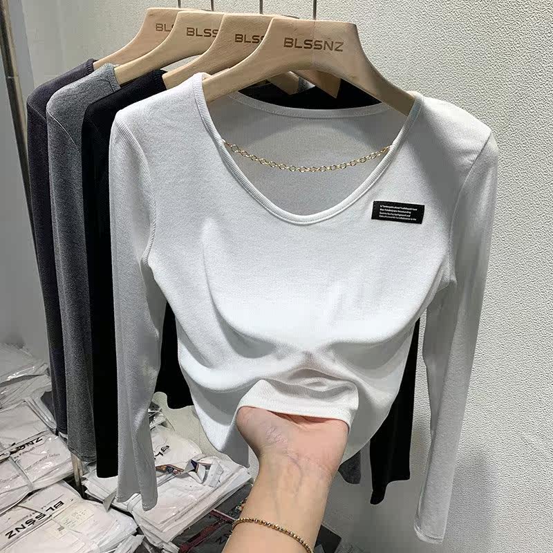 打底衫女内搭春装2022年新款洋气锁骨设计感小众短款上衣长袖t恤热门设计联盟服务商