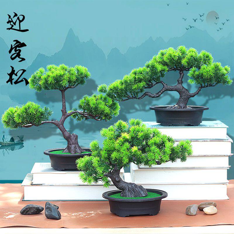仿真植物小盆栽假花塑料花盆景家居摆件干花客厅装饰品迎客松树枝热门设计联盟服务商